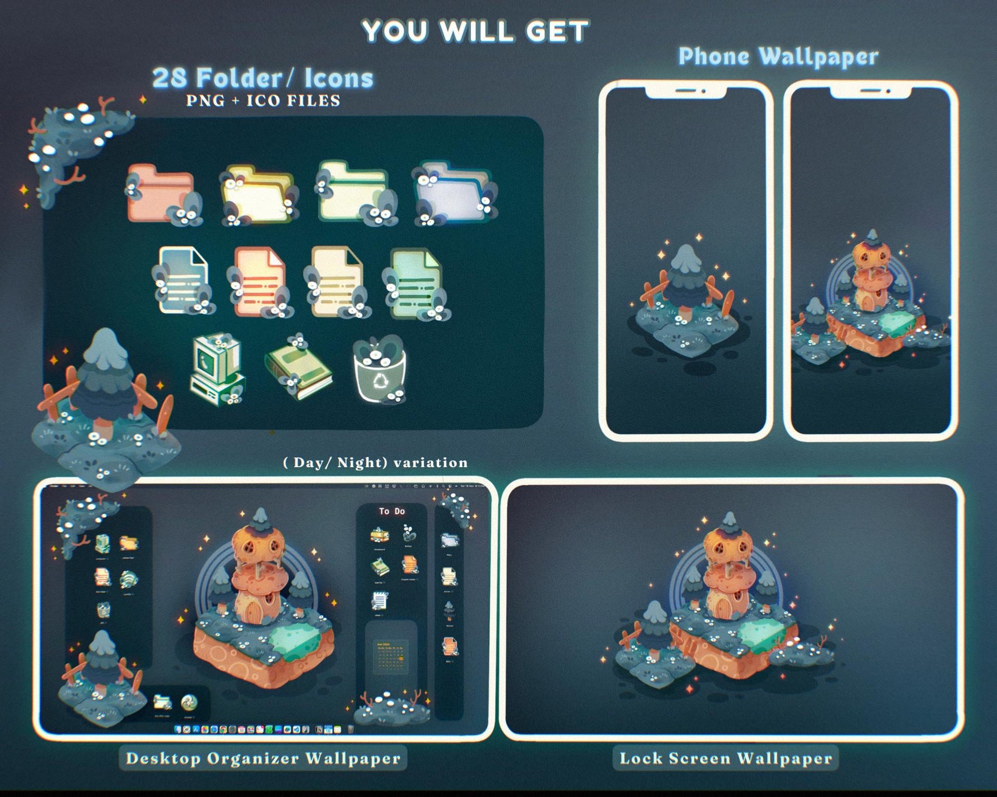 BLUE FOREST Desktop Theme Background Wallpaper Organizer Set | Lofi Garden Folder Icons Wallpaper Organizer | Winter Desktop Organizer
