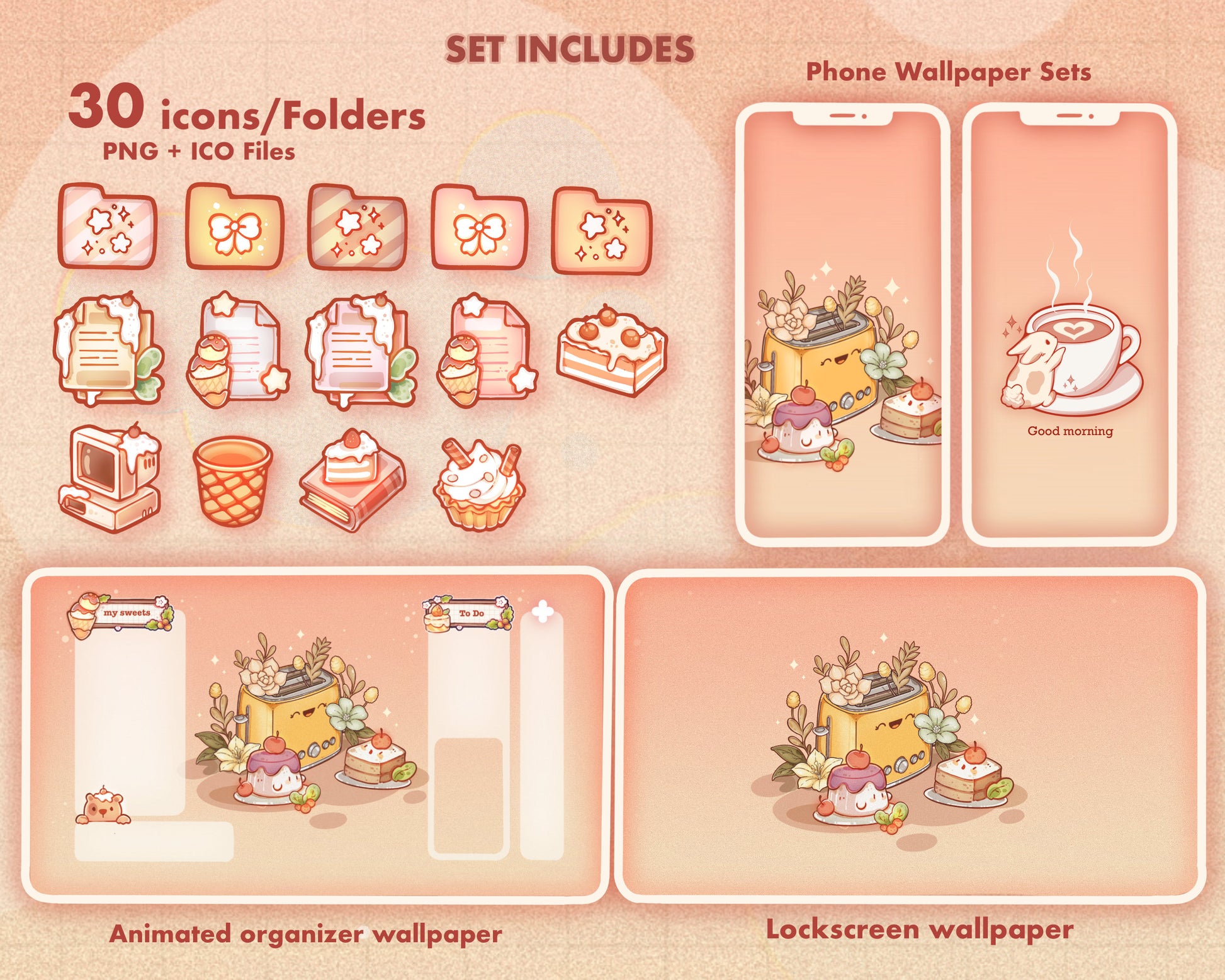 Doodle Sweets Desktop Folder Organizer Icon Set | Cute File Icons | Bakery Theme Desktop Folder Icons for Mac & PC | Wallpaper Organizer Set