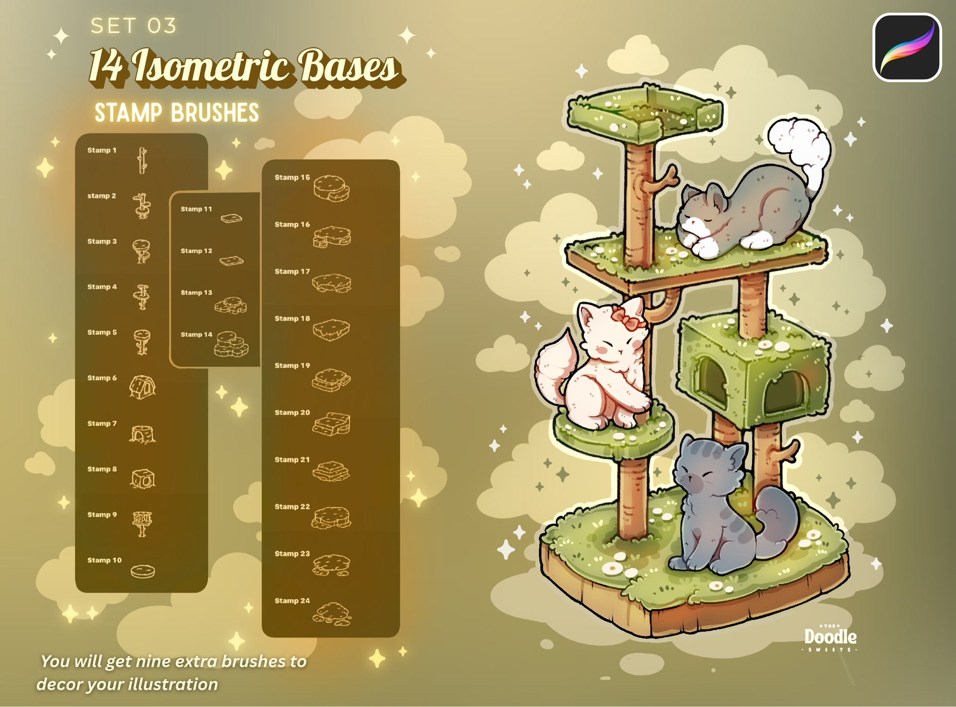 Nuzzlewood Cats Brush Pack is a warm and cozy collection made for cat lovers and illustration artists who adore soft, whimsical scenes.